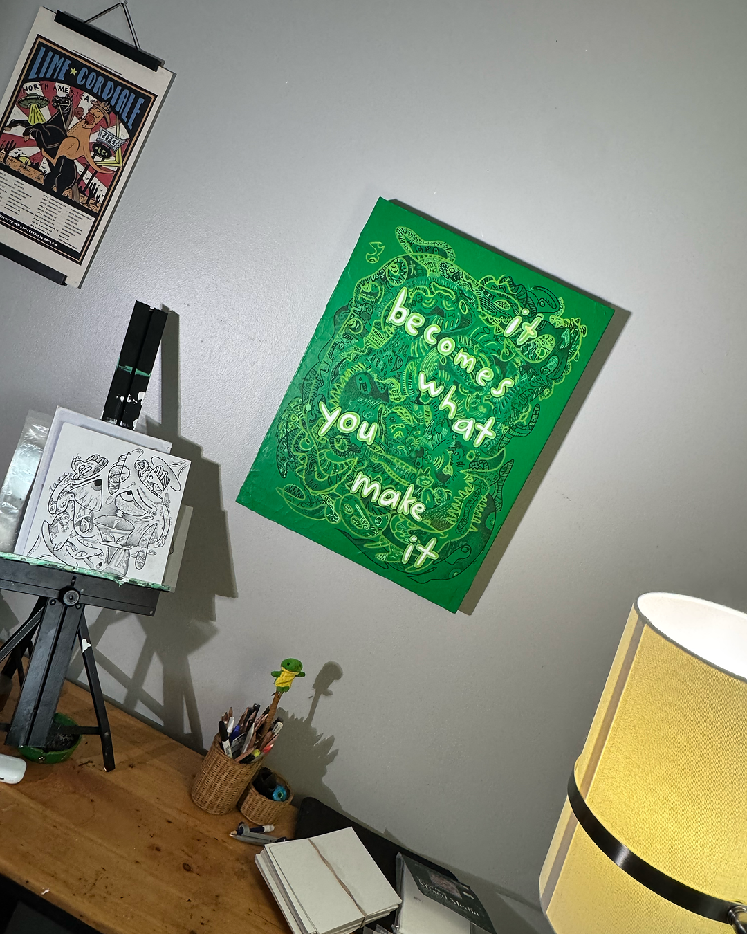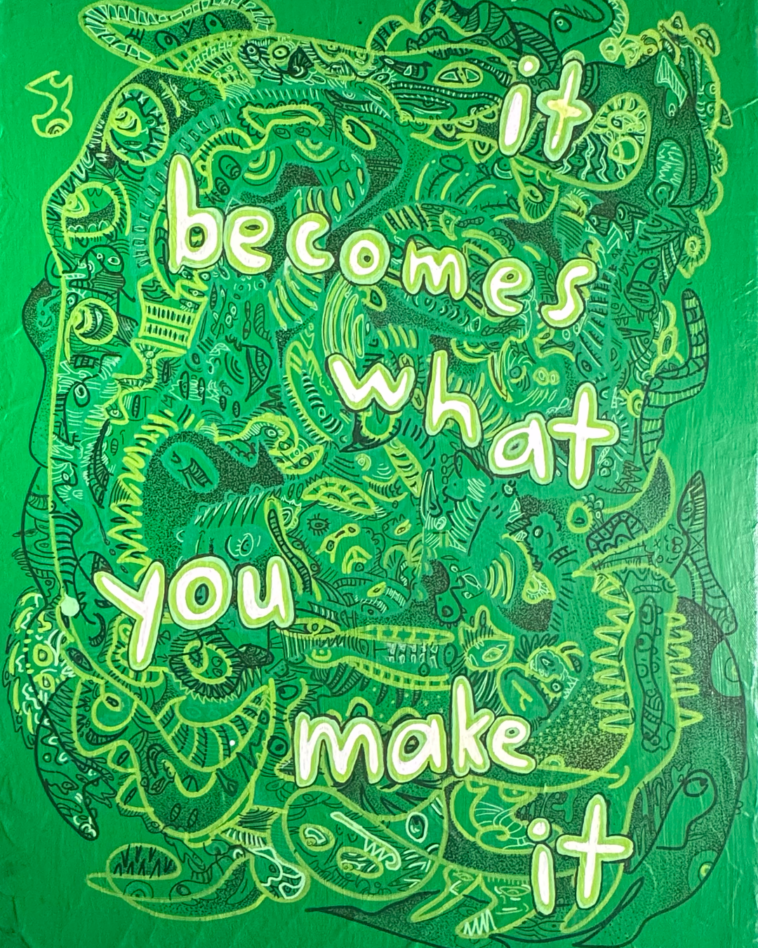 “it becomes what you make it” green original acrylic painting on canvas